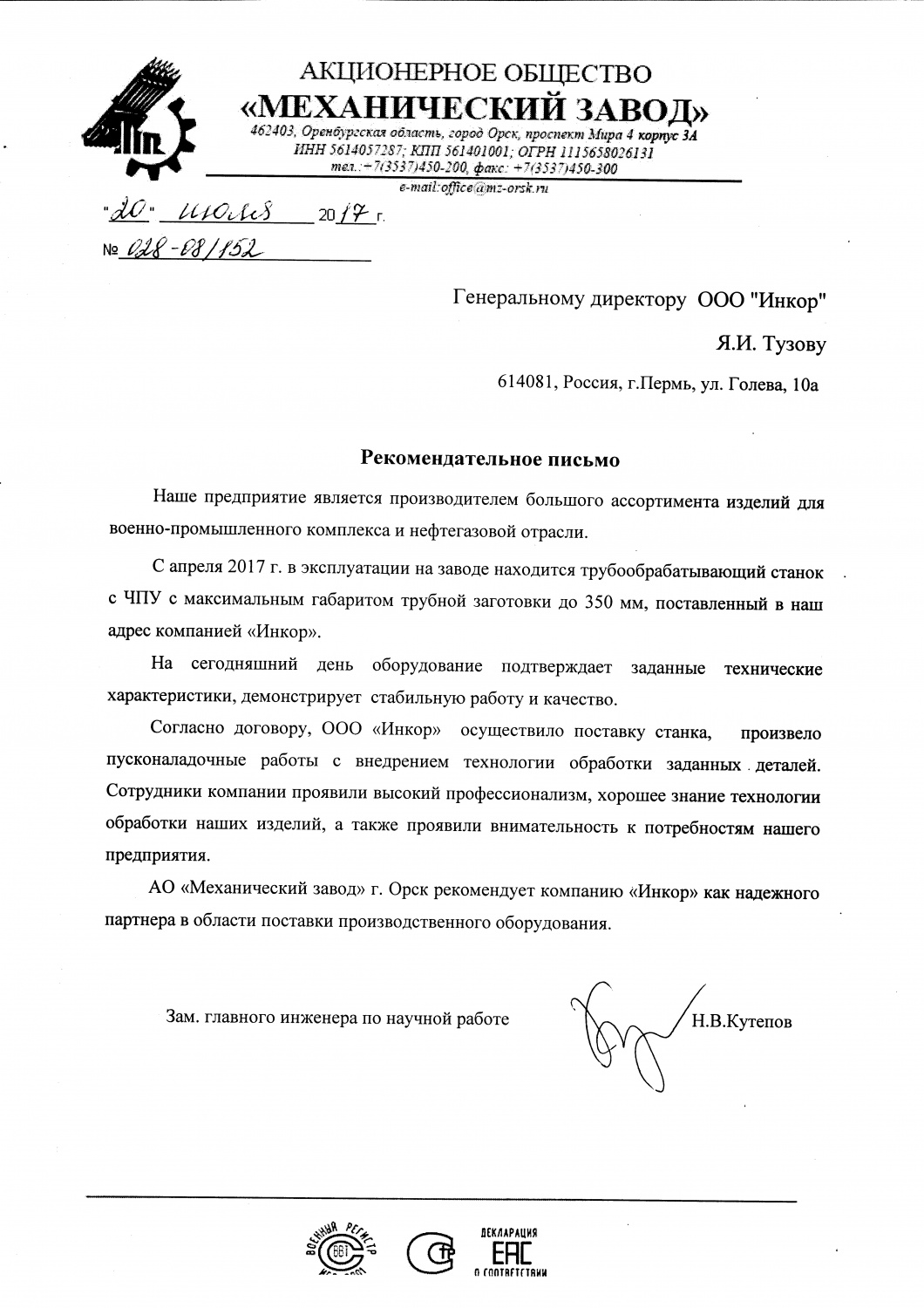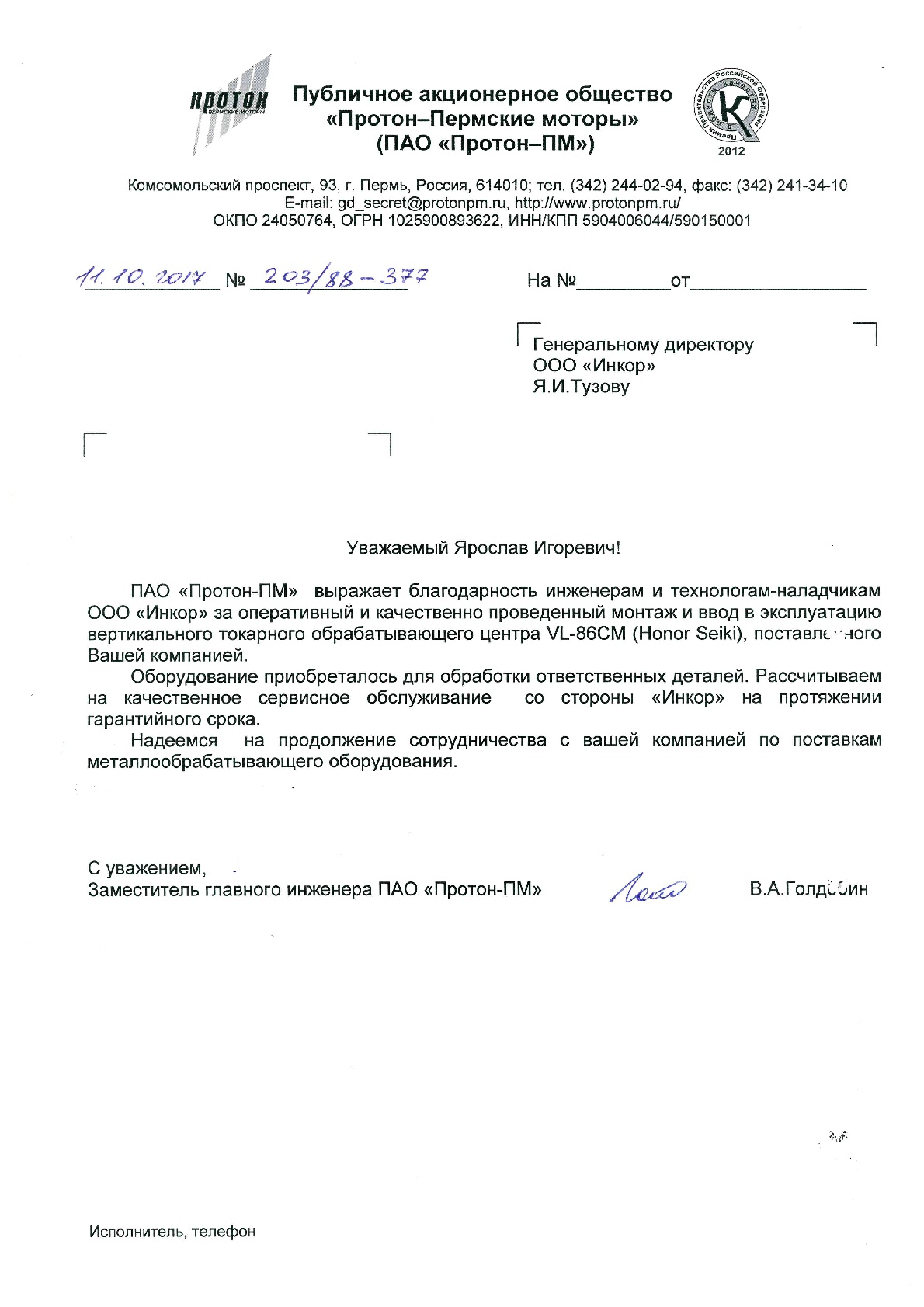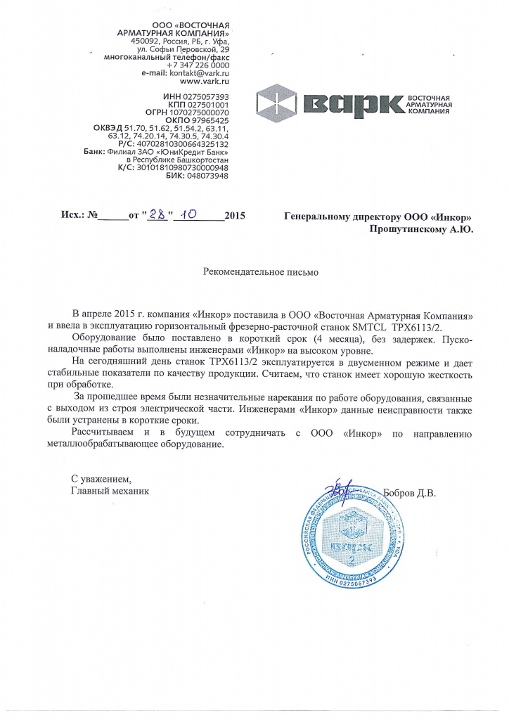 Мы искренне благодарим Вас и вверенный Вам коллектив за качественную и оптативную техническую поддержку со стороны ваших специалистов. Благодаря их высочайшей квалификации и профессионализму были решены в минимальные сроки абсолютно все поставленные задачи связанные с обеспечением работоспособности нашего оборудования с ЧПУ.