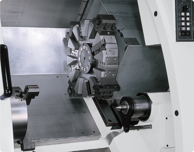 Высокая жесткость, тяжелые режимы обработки и простота в эксплуатации. Наклонная конструкция станины способствует легкому удалению стружки.